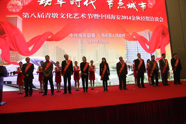 热烈祝贺郑渊周总经理在本月8日召开的第八届青墩文化艺术节暨中国海安2014金秋经贸洽谈会 ,荣获海安县十佳外来企业家称号。
