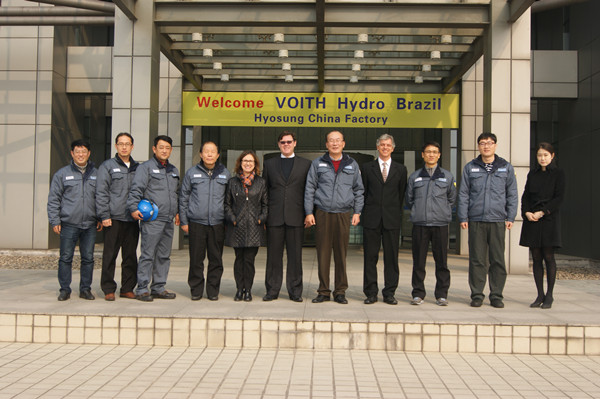 2015年01月21日巴西Voith Hydro 公司一行3人来我司进行为期2天的考察及商讨合作事项,本次来我司的有巴西Voith Hydro公司采购总监Ms. Ligia Aparecida Palma、 技术总监Mr. Ricardo Alexandre Maia、以及QC— Mr. Edoardo Perrotti。我司高层领导均参加了此次接待。